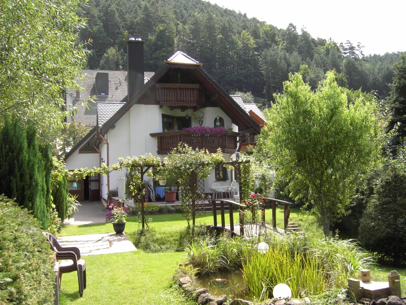 Unser im Landhausstil erbautes Haus bietet Ihnen erholsamen Urlaub in romantischer Atmosphäre am Waldrand. Entspannen Sie sich in dem vom klaren Ei-Bach durchquerten Idyll mit Liegewiese und Gartenteich, oder auf der Terrasse mit Grillplatz.