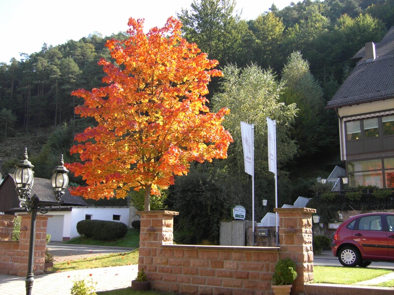 Gartenteich am Eibach Ahornbaum im Herbst