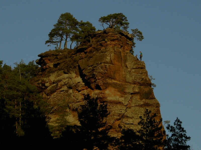 Blick auf Erfweiler Richtung Süden Kletterer auf dem Rappenfelsen